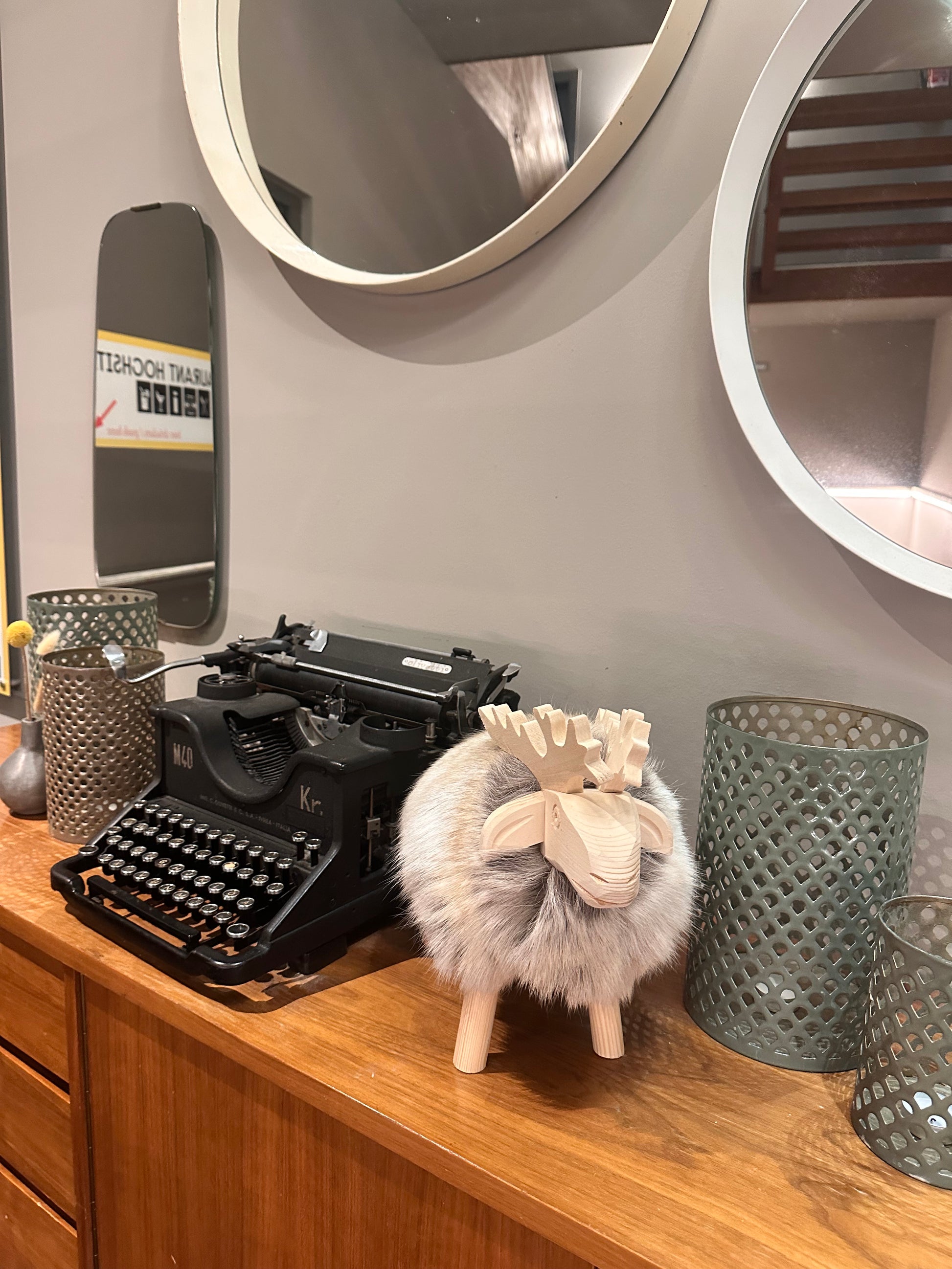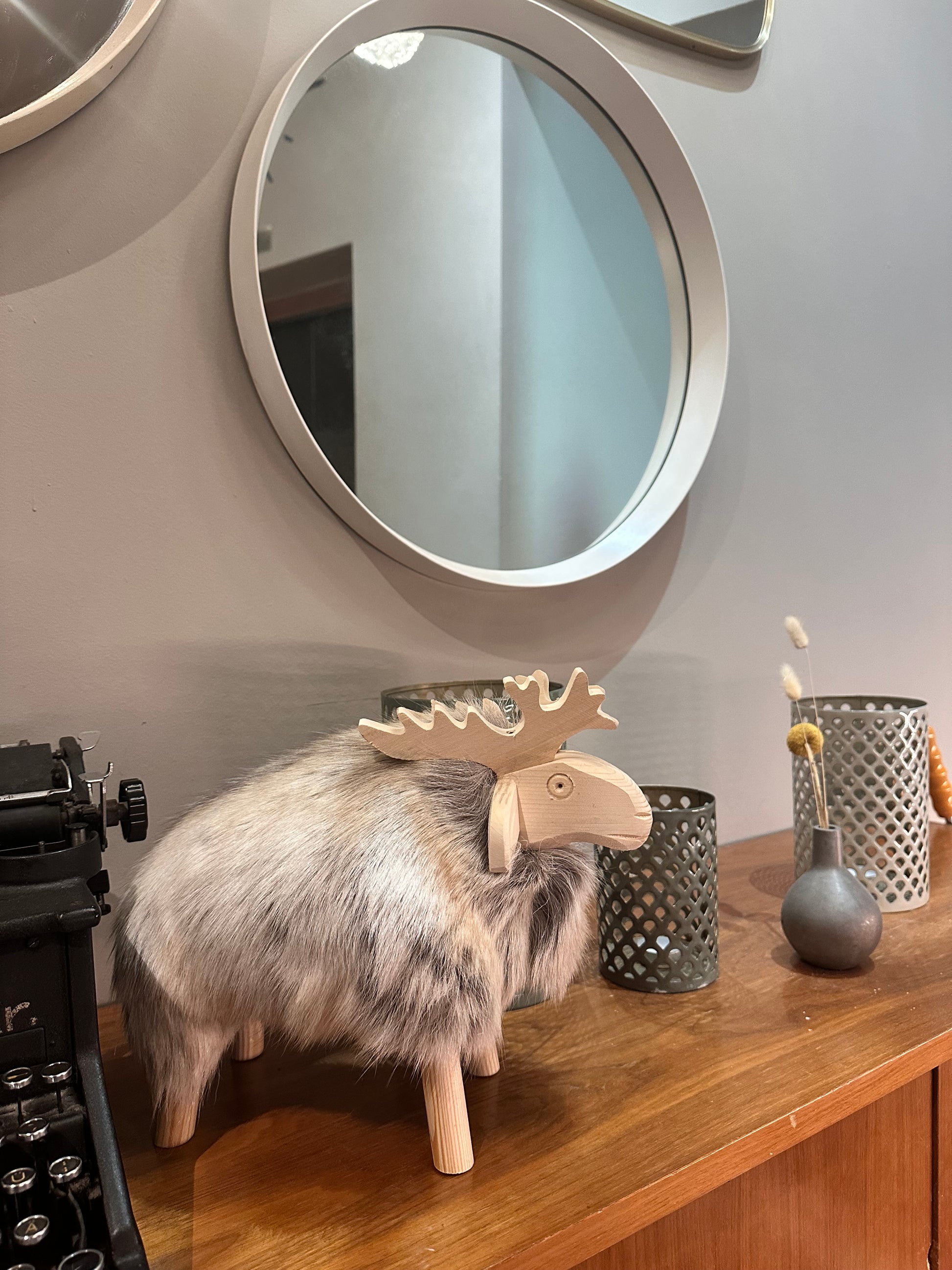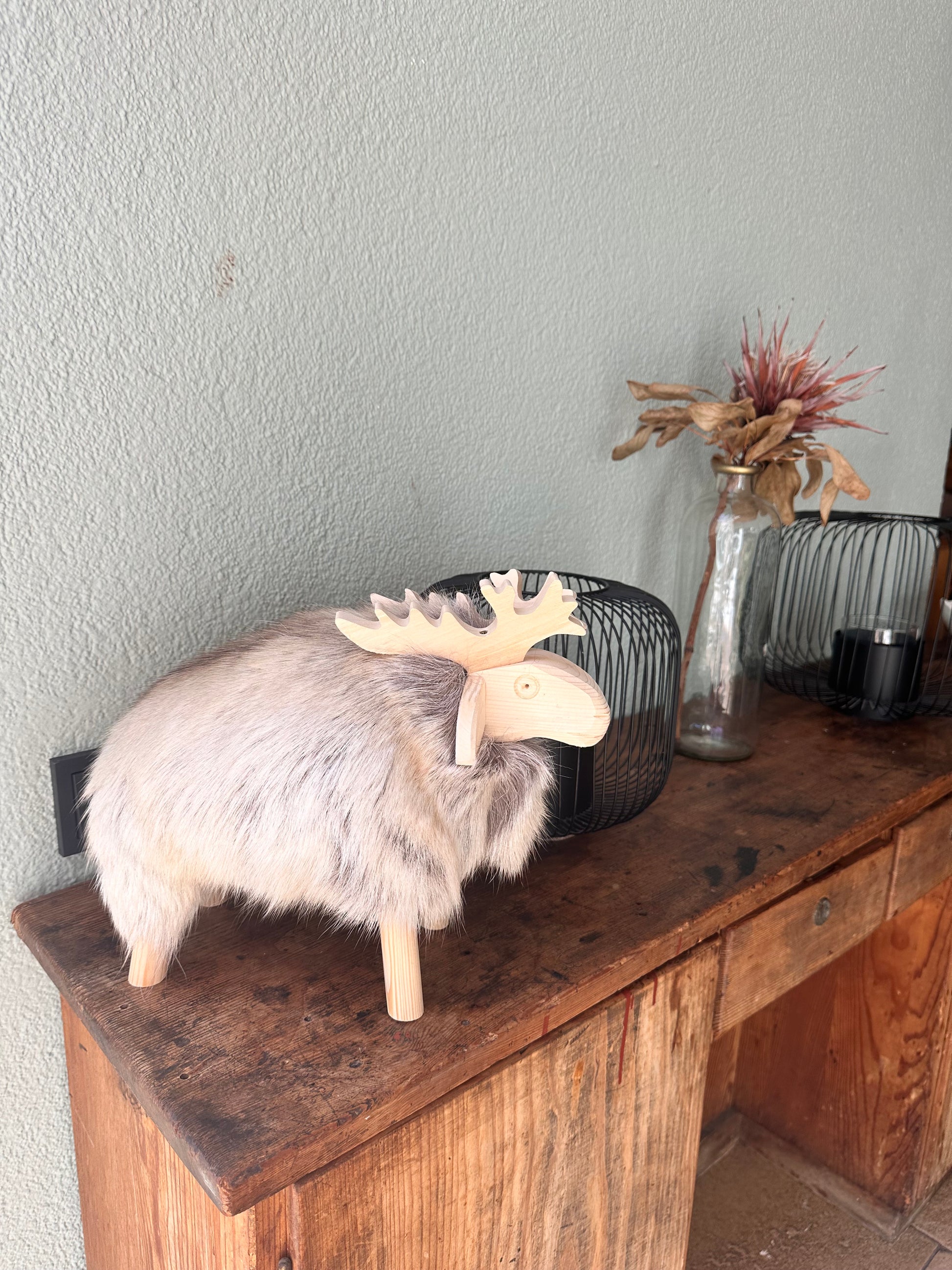 Material: Kieferholz + echtes Rentierfell
