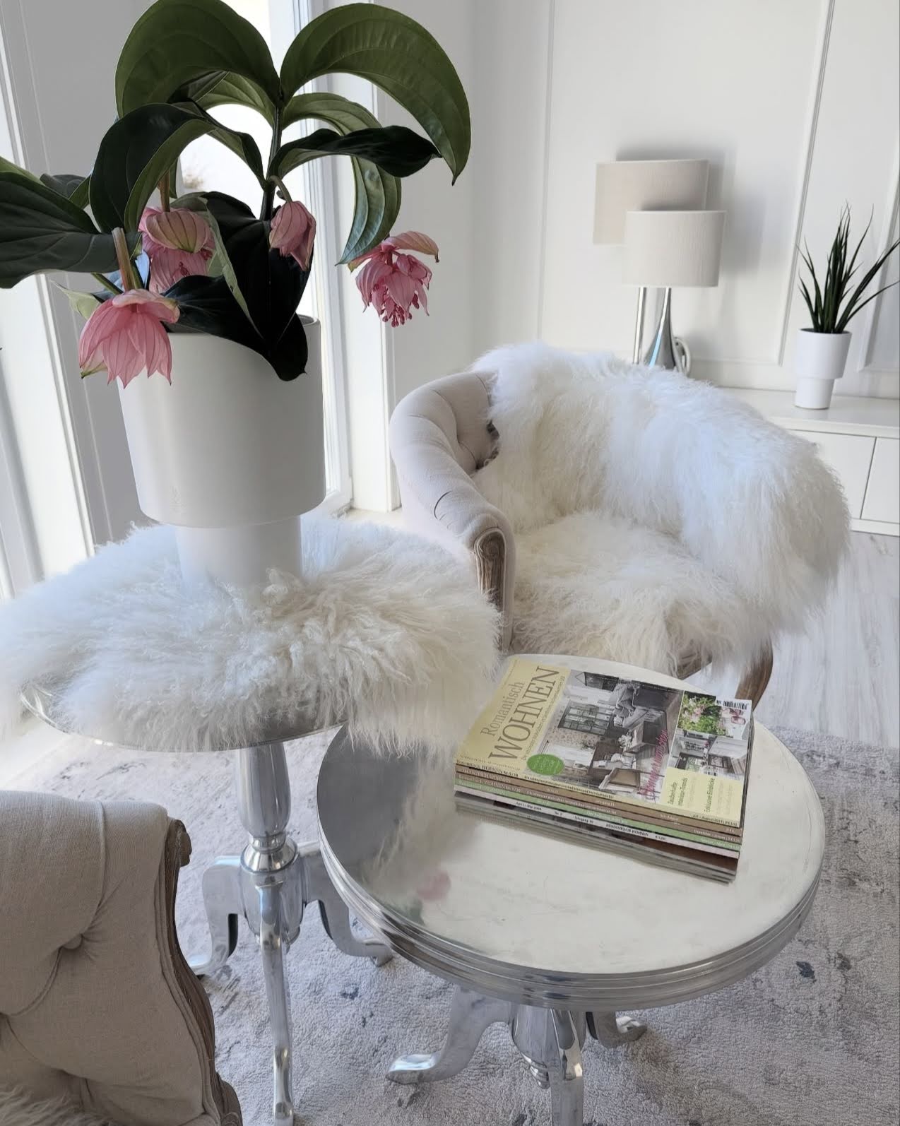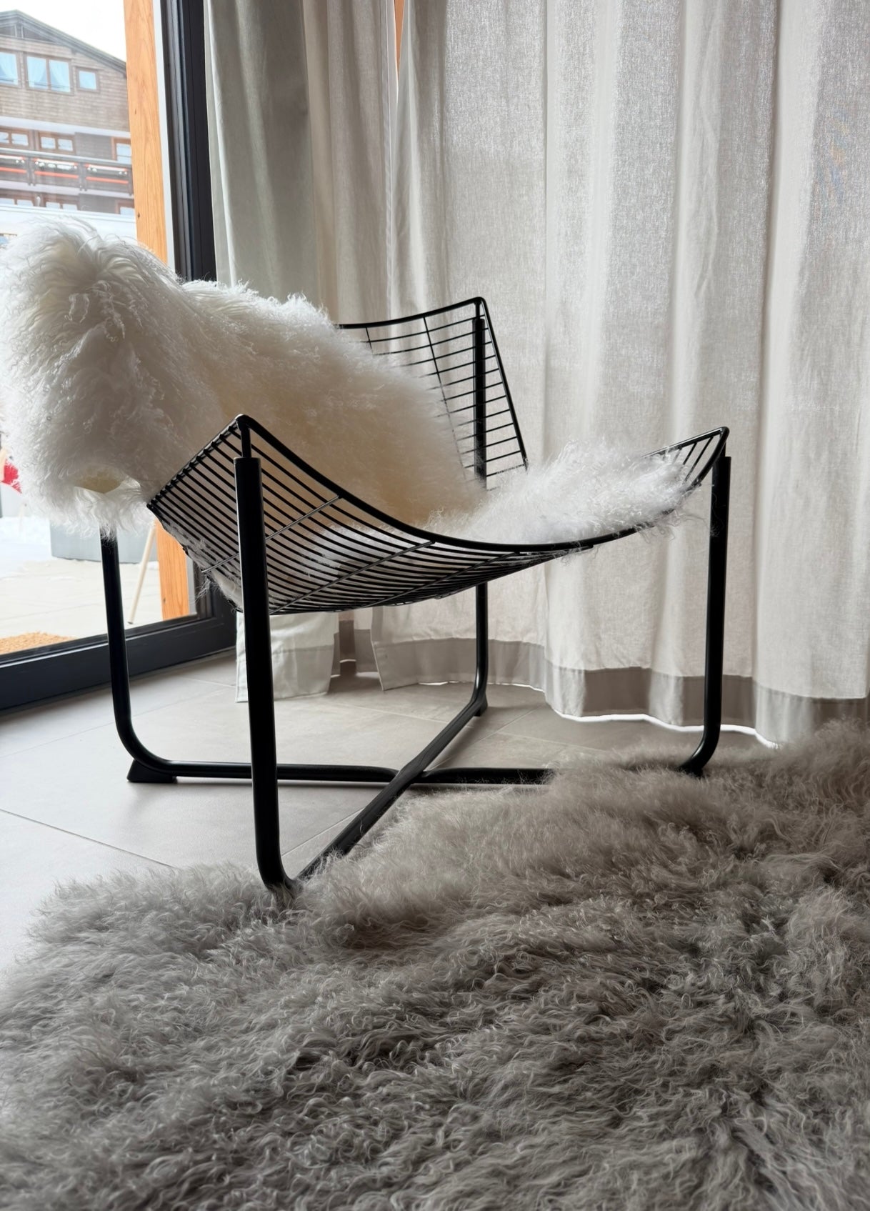 Tibetische Lammfelle mit feinen Locken sind wahre Blickfänge auf Sesseln oder Sofas.