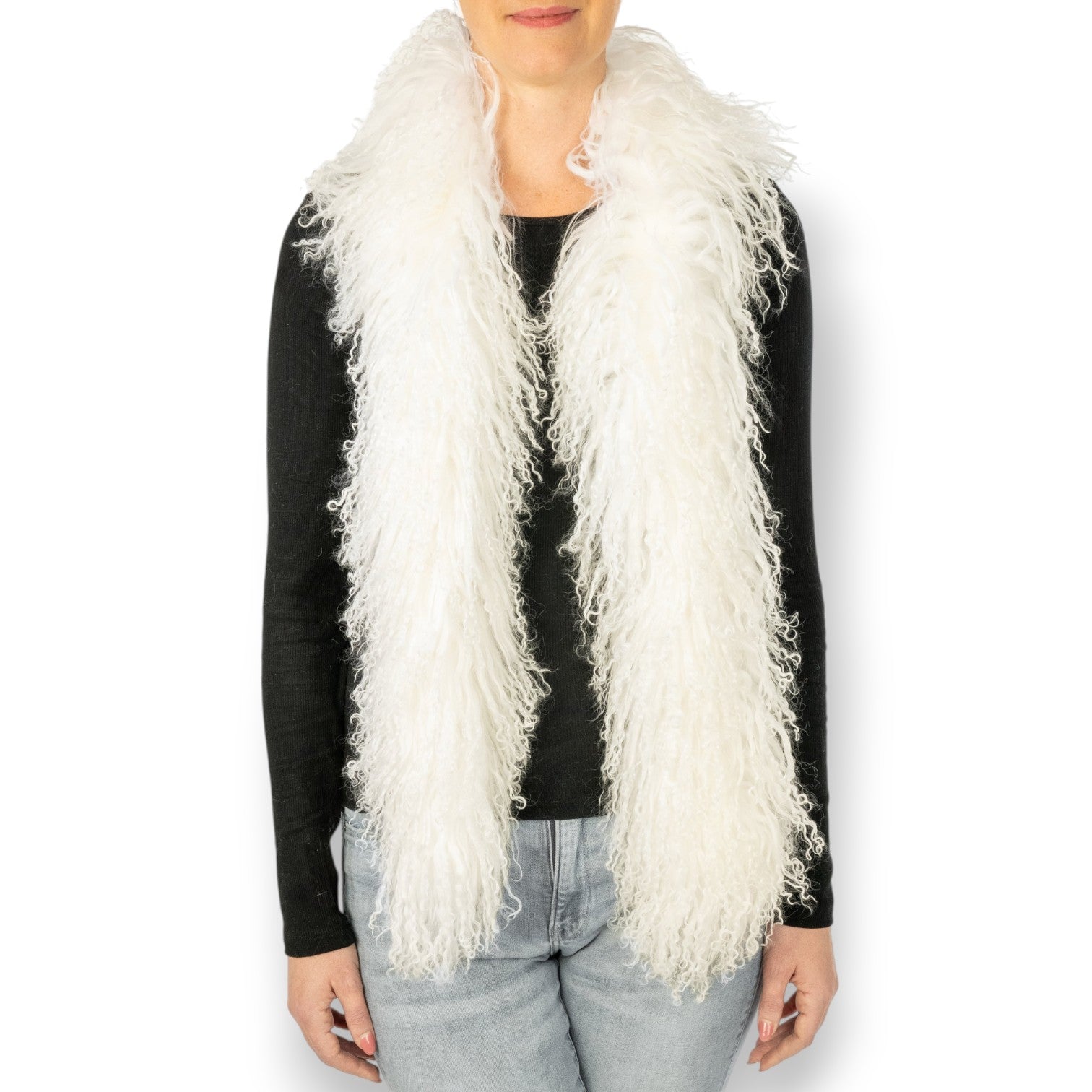 Tibetlamm Schal Boa / Lammfell Schal handgefertigt in weiß
